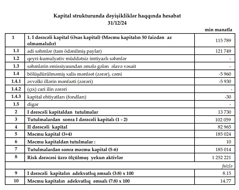 - Bankın likvidlik mövqeyi dayanıqlıdır və likvidlik əmsalı 70.6% təşkil edir ki, bu da AMB-ın tələb etdiyi minimum normadan 2.4 dəfə yüksəkdir.