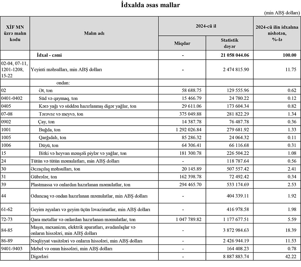 2024-cü ildə xaricdən Azərbaycana 226 milyon 504 min dollar dəyərində 181 milyon 301 ton bitki və heyvan mənşəli piylər və yağlar idxal edilib.