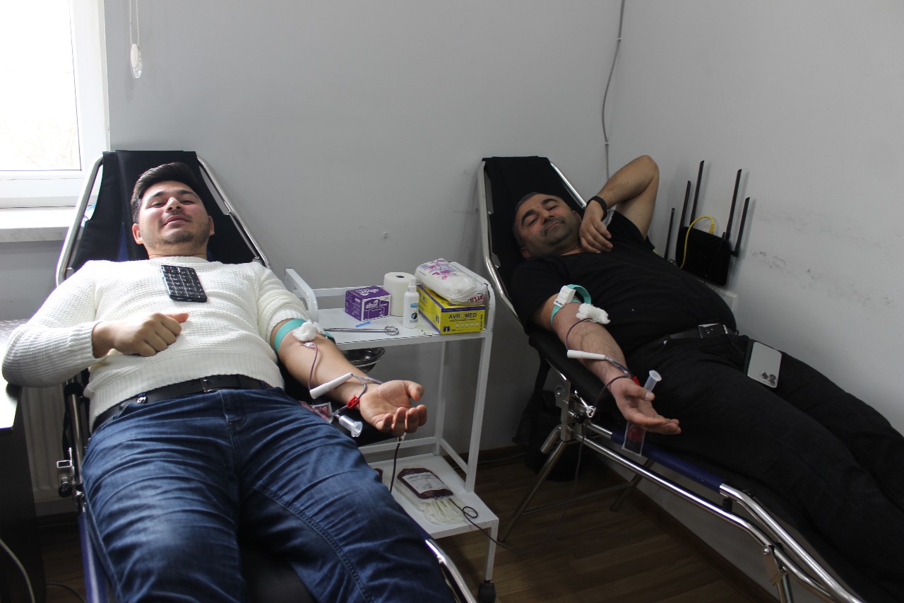 Aksiya Mərkəzi Qan Bankının xüsusi tibb briqadasının həkim hemotoloqları tərəfindən donorların sağlamlıq vəziyyəti yoxlanıldıqdan sonra onlardan qan götürülüb.