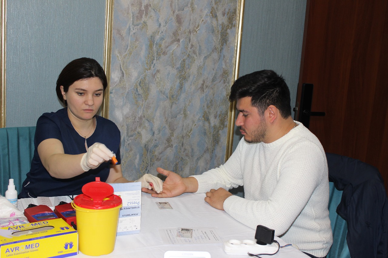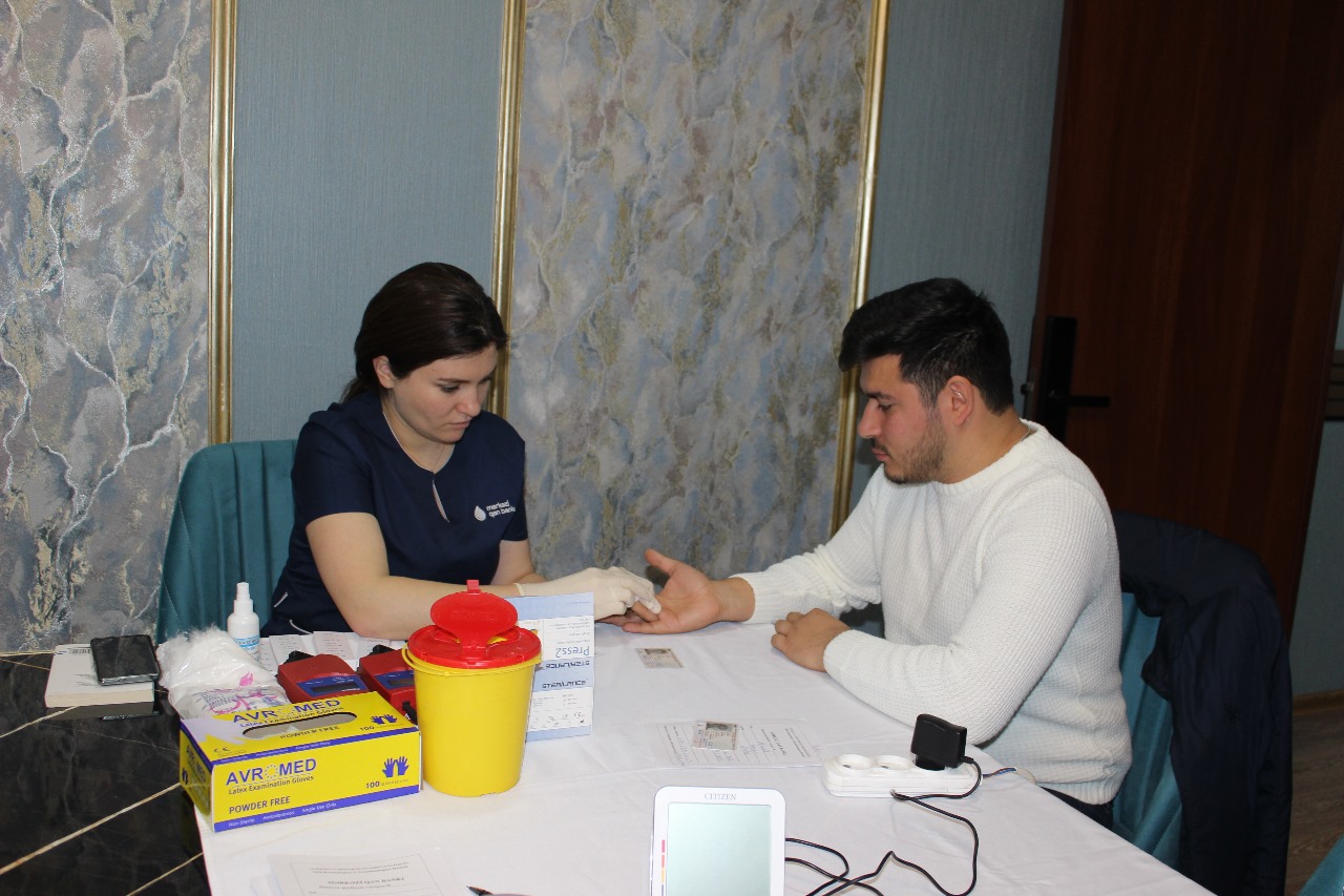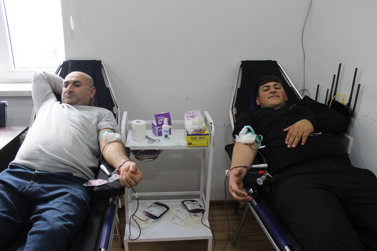 Aksiya Mərkəzi Qan Bankının xüsusi tibb briqadasının həkim hemotoloqları tərəfindən donorların sağlamlıq vəziyyəti yoxlanıldıqdan sonra onlardan qan götürülüb.