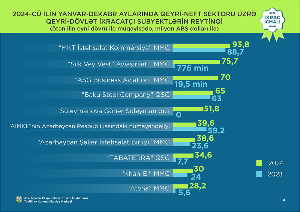 İqtisadi İslahatların Təhlili və Kommunikasiya Mərkəzi (İİTKM) “İxrac icmalı”nın "Yanvar 2025" sayını təqdim edib.