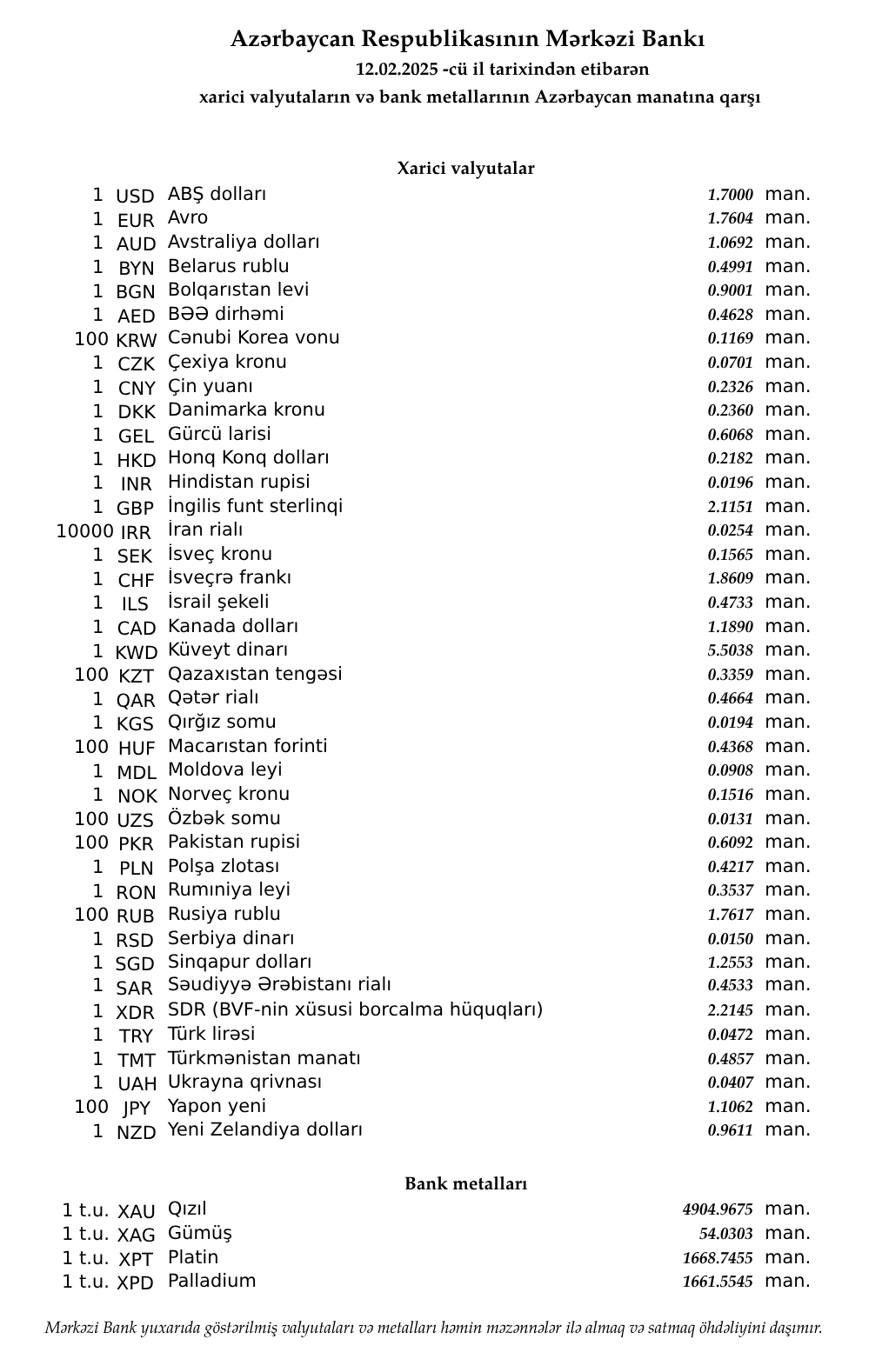 Dolların bazar ertəsi üçün rəsmi məzənnəsi müəyyən olunub
