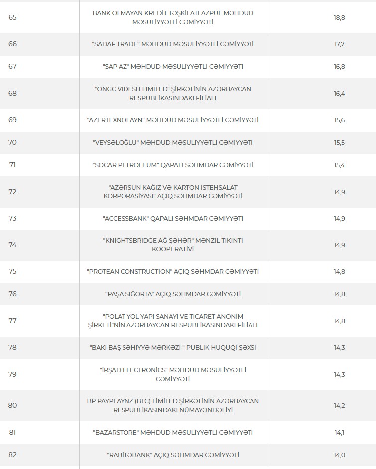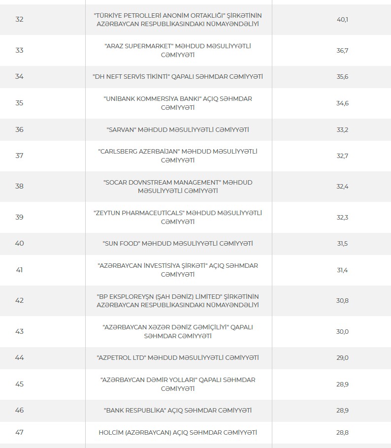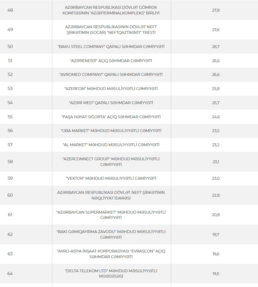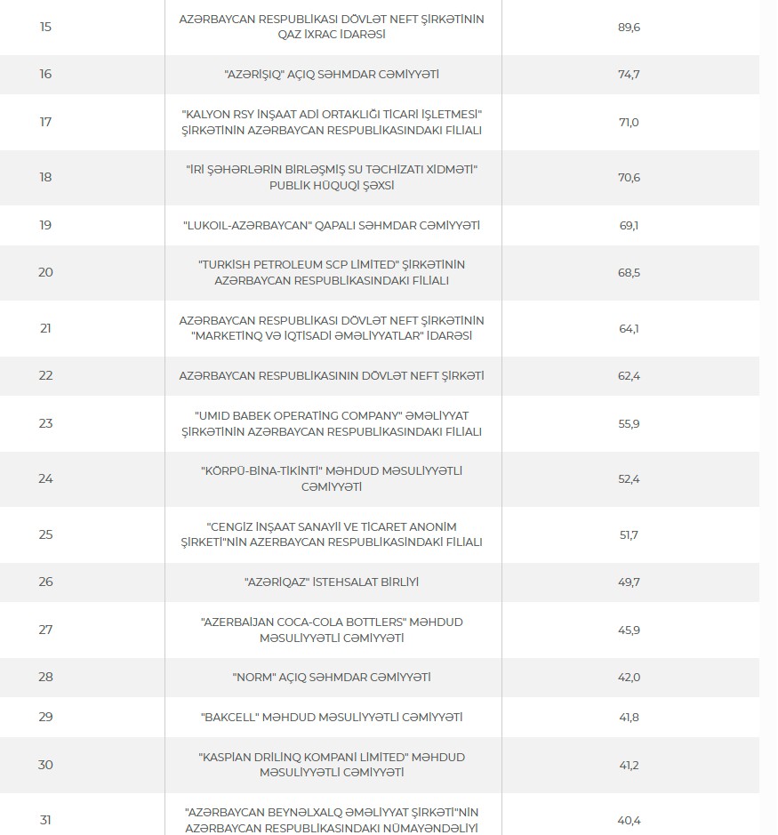 Ən çox vergi ödəyən Azərbaycan şirkətlərinin siyahısı açıqlandı