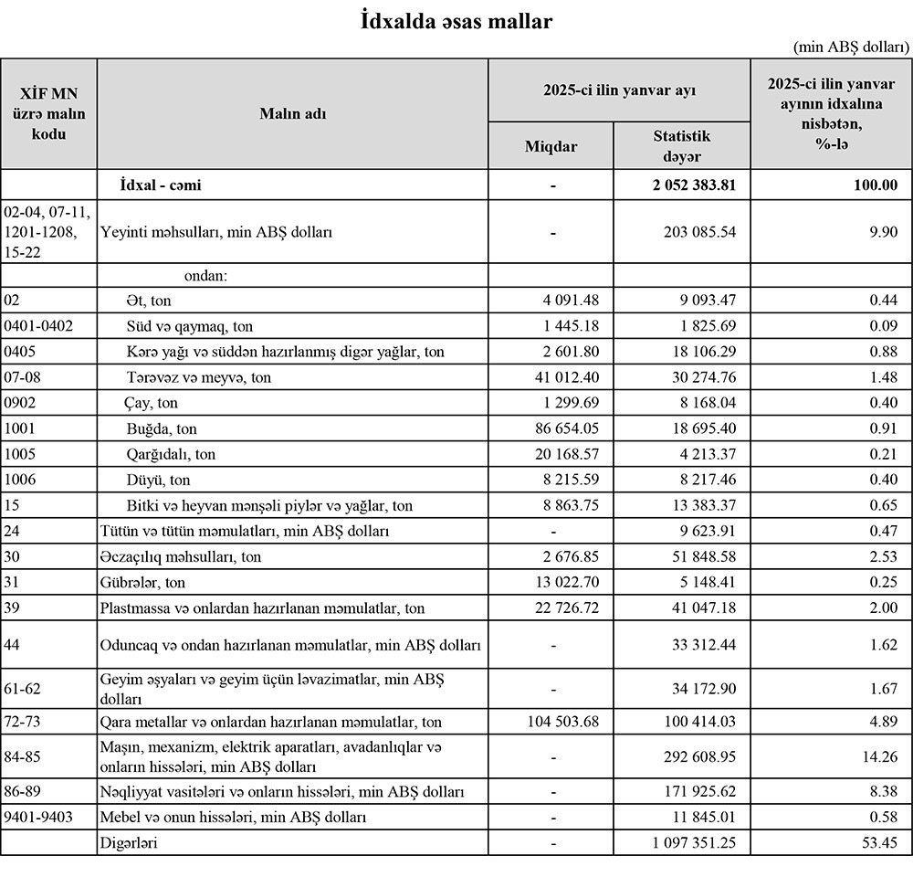 2025-ci ilin yanvar ayında Azərbaycanın ən çox ixrac və idxal etdiyi mallar.
