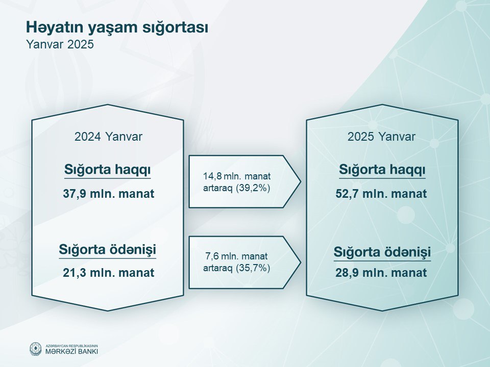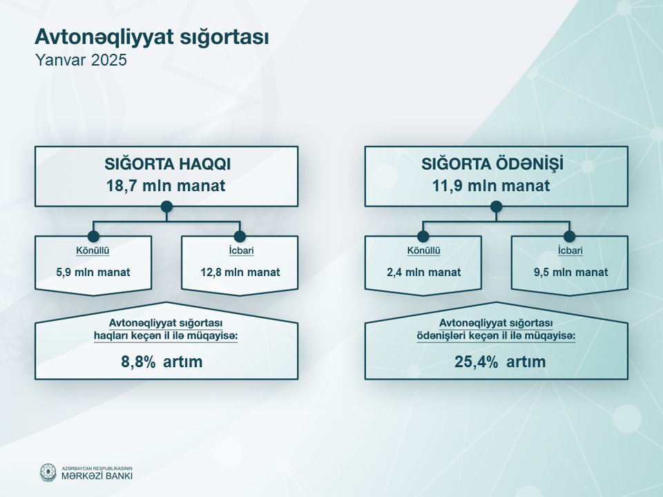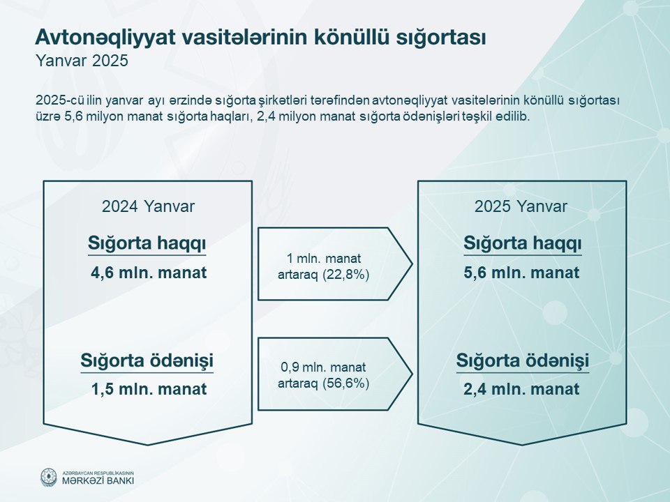 Yanvarda sığorta ödənişləri isə 22,8% artaraq 47,6 milyon manat təşkil edib.