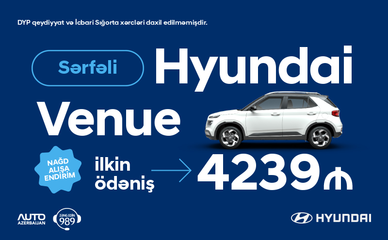 Universal və funksional bir avtomobil həvəskarısınızsa, o zaman Hyundai Venue – sadəcə 4239 AZN ilkin ödənişlə sizin ola bilər!