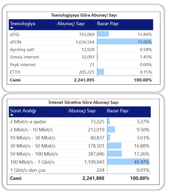 Azərbaycan üzrə sabit genişzolaqlı internet abunəçilərinin sayı 2,2 milyondur.