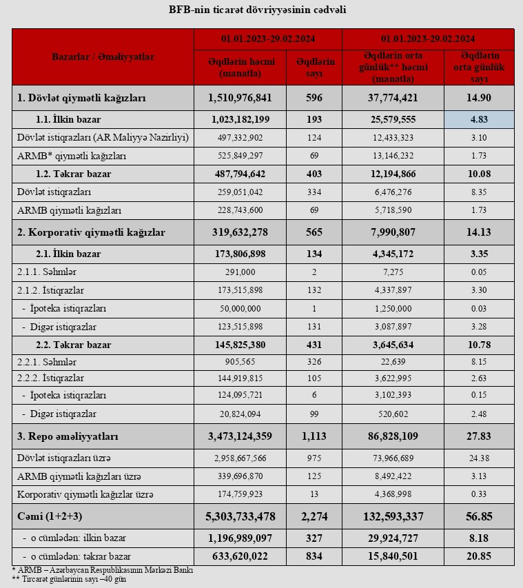 Repo əməliyyatları xaric Bakı Fond Birjasının dövriyyəsi 2,7 dəfə azalıb - YENİLƏNİB