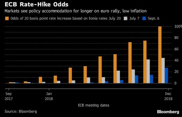 İnvestorlar, AMB-nin edəcəyi ilk faiz artırımına bağlı gözləntilərini, İyul ayı toplantısından sonra 2018-ci ilin Dekabr ayından 2019-cu ilin Mart ayına təxirə salmışdılar.