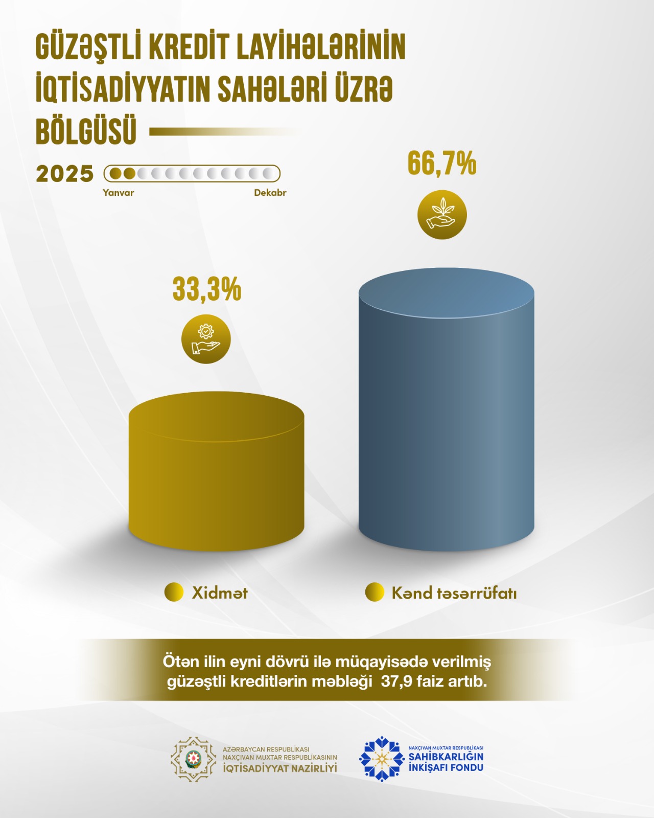 Naxçıvanda sahibkarlara verilən güzəştli kreditlərin həcmi 37,9 faiz artıb
