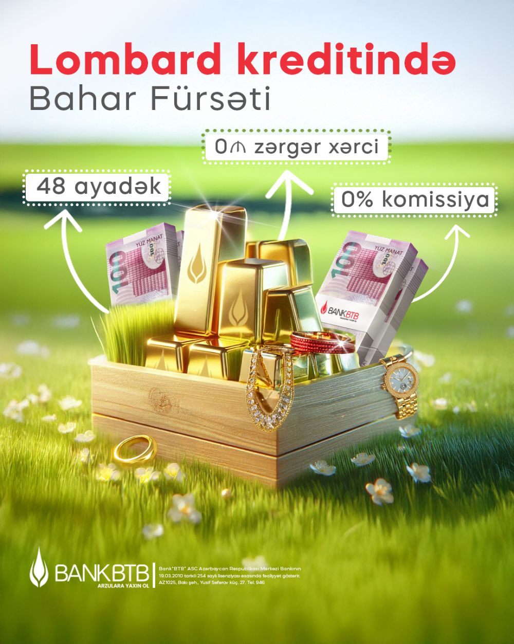 Qeyd edək ki, təqdim edilən qızıl və qızıl zinət əşyaları sıfır xidmət haqqı ilə, yüksək dəyərlə bank tərəfindən qiymətləndirilir və kredit dərhal rəsmiləşdirilir.