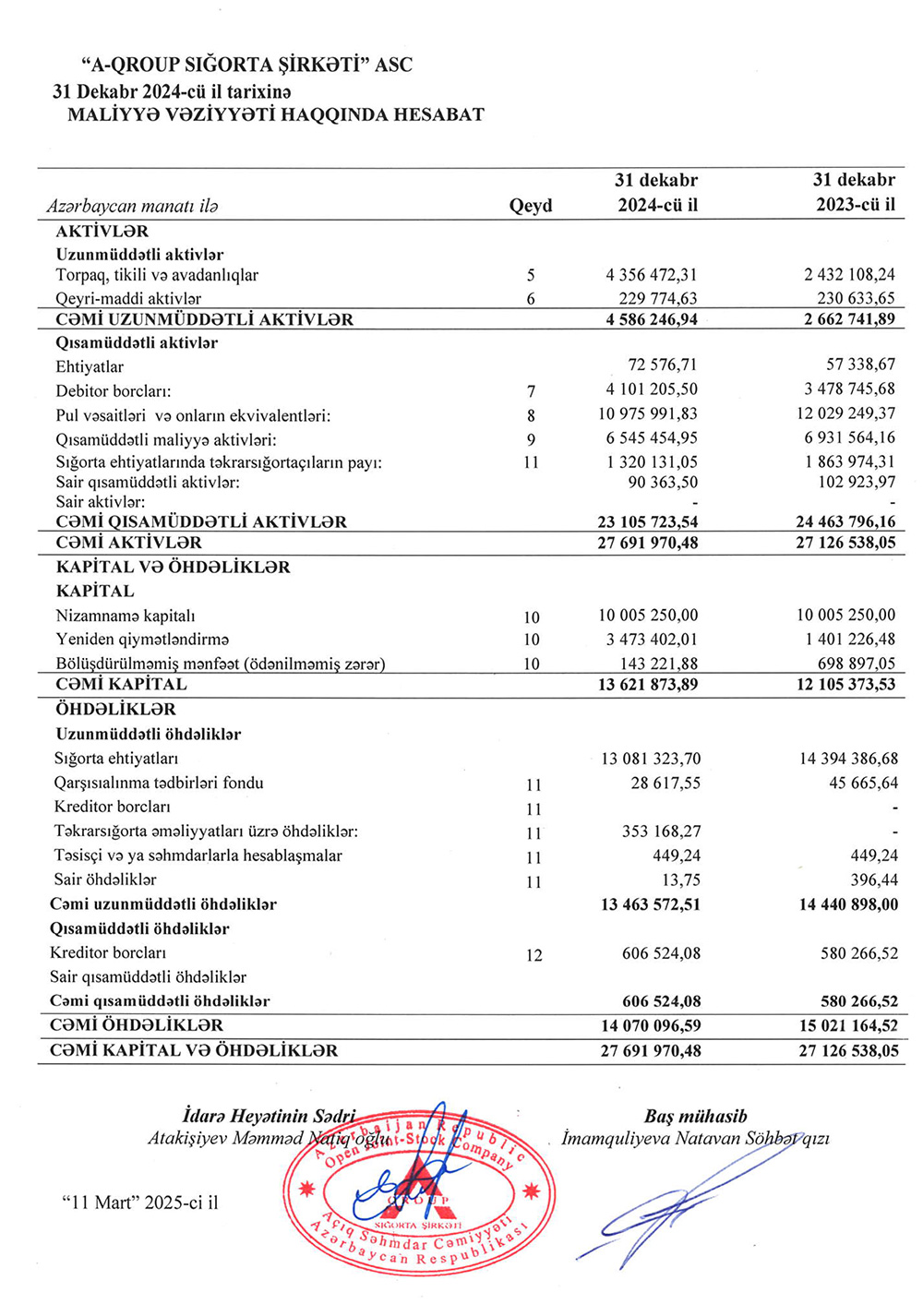 Yeganə təsisçisi Azərbaycan vətəndaşı Sabir Adnayev olan “A-Qroup Sığorta Şirkəti” ASC 2024-cü ili 143 min manat xalis mənfəət ilə başa vurub. Halbuki, Şirkət 2023-cü ili 699 min manat xalis mənfəət ilə bağlamışdı. Beləliklə, “A-Qroup Sığorta Şirkəti”nin xalis mənfəəti 2024-cü ildə 2023-cü illə müqayisədə 4,9 dəfə və ya 556 min manat azalıb.