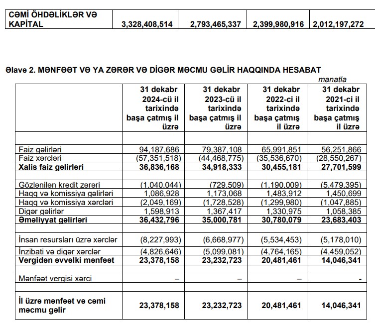 Marja.az xəbər verir ki, İKZF-nın faiz gəlirləri 2023-cü ildə 79 milyon 387 min manat ikən, 2024-cü ildə 94 milyon 188 min manata yüksəlib (14 milyon 801 min manat və ya 18,6% artıb).