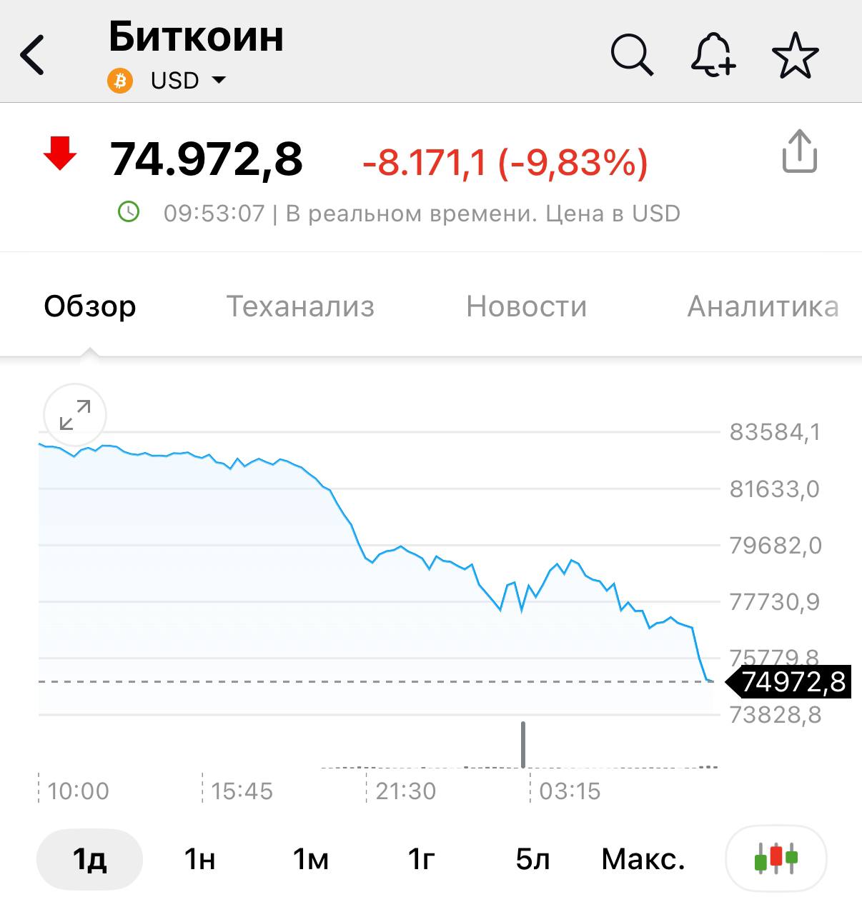 Bitcoin-in qiyməti 75 min dollardan aşağı düşdü