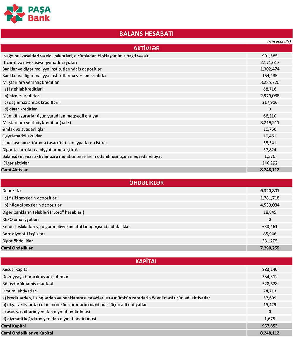 "PAŞA Bank"ın cəmi aktivləri 8 milyard 250 milyon manata yaxınlaşıb