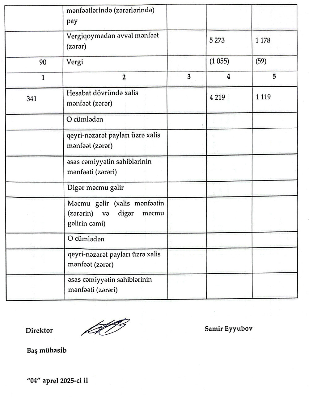 "Alatava-Avtonəqliyyat" QSC-nin 31 dekabr 2024-cü il tarixində başa çatan il üzrə maliyyə hesabatları.