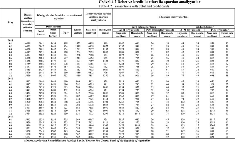 2017-ci ilin İyul ayında Azərbaycanda cəmi ödəniş kartlarının sayı 56 min ədəd artaraq 5 milyon 564 min ədədə çatıb.