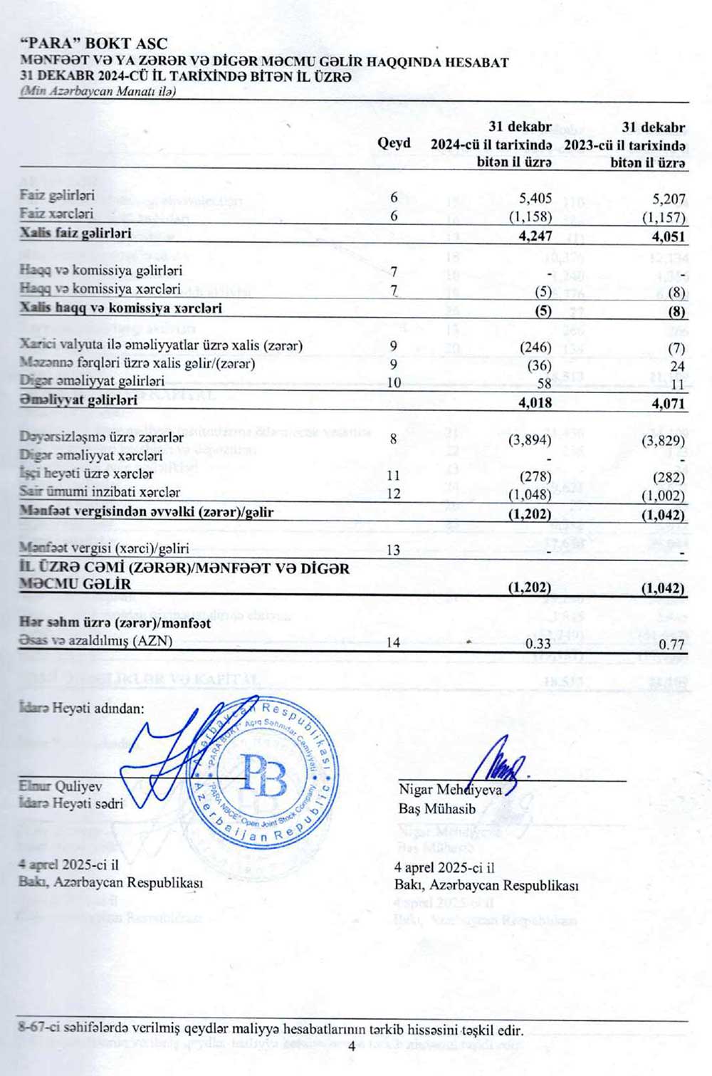31 dekabr 2024-cü il tarixində bitən il üzrə “Para BOKT” ASC-nin maliyyə göstəriciləri ilə daha ətraflı buradan tanış ila bilərsiniz.