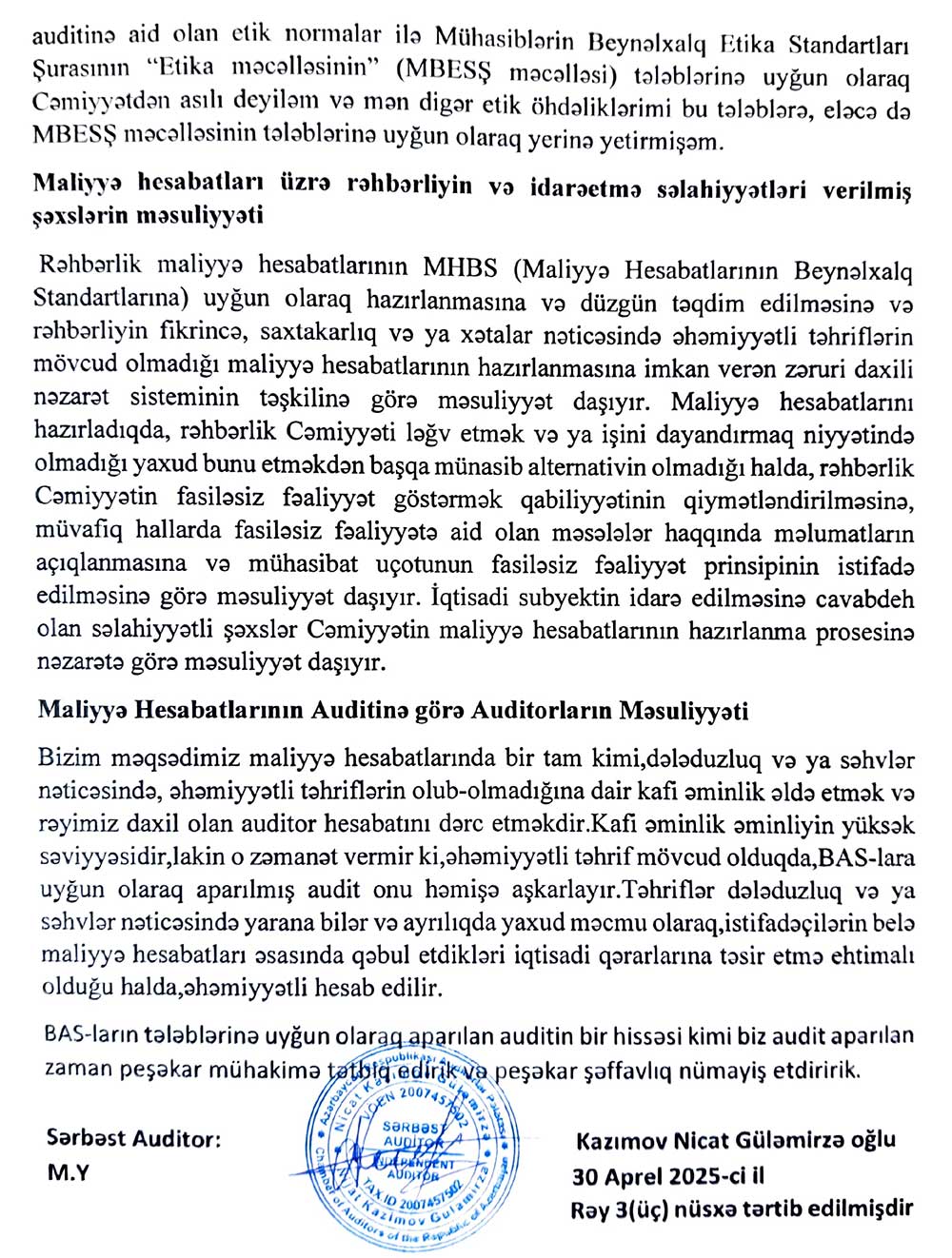 "Azəri-Star Mikromaliyyə" MMC-nin 2024-cü il üzrə maliyyə hesabatları