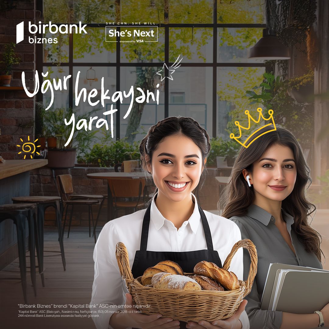 Birbank Biznes-dən xanım sahibkarlar üçün daha bir fürsət: “She’s Next” təşəbbüsünə qoşulun 15 000 AZN qazanmaq şansına sahib olun(®) Sahibkarlar üçün biznes və bankçılıq xidmətlərində bazar liderlərindən olan Birbank Biznes rəqəmsal ödənişlərdə dünya lideri olan Visa şirkəti ilə birgə qadın sahibkarlığının inkişafına yönələn “She’s Next” qlobal təşəbbüsünün üçüncü dalğasına start verir.