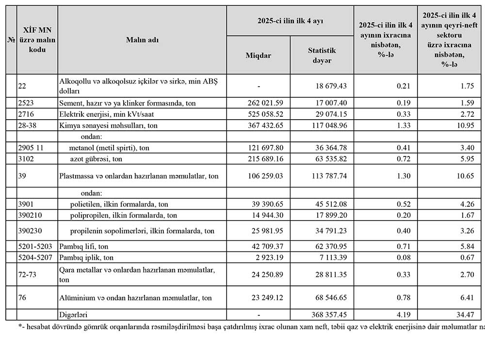 2025-cü ilin yanvar-aprel aylarında (ilk 4 ayda) Azərbaycanın ən çox ixrac və idxal etdiyi mallar.