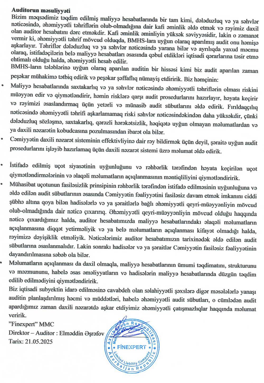 Bank Olmayan Kredit Təşkilatı "Finans Kredit" MMC-nin 31 dekabr 2024-cü il tarixində başa çatmış il üzrə maliyyə hesabatları - ƏTRAFLI