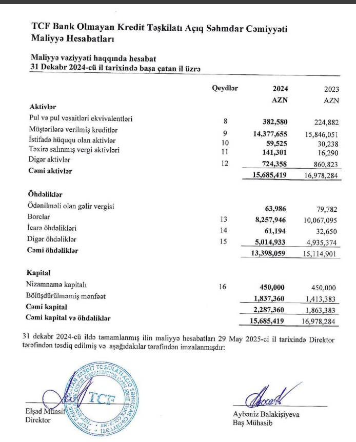 "TCF" BOKT kiçilib, gəlirləri və mənfəəti azalıb
