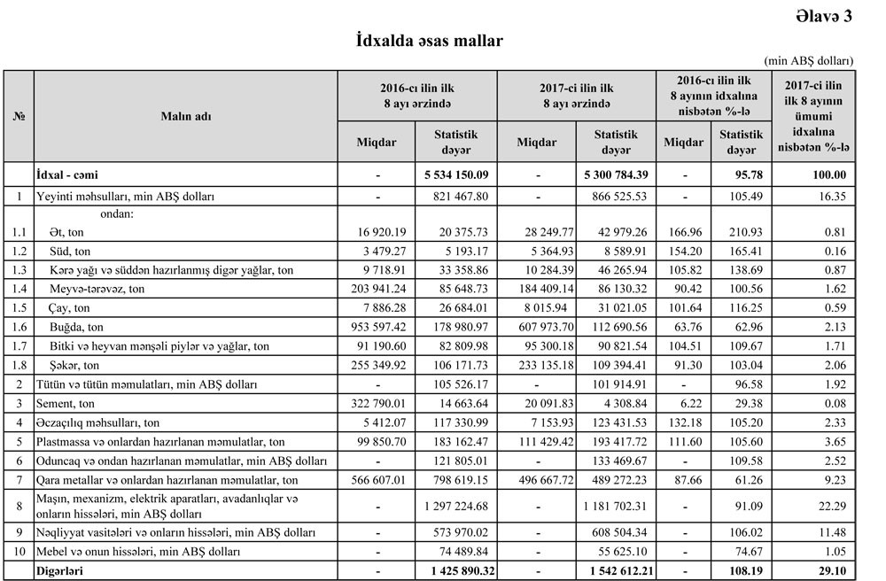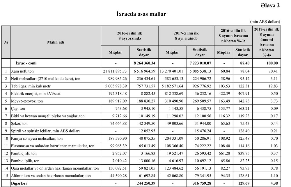 Azərbaycanın ən çox ixrac və idxal etdiyi mallar