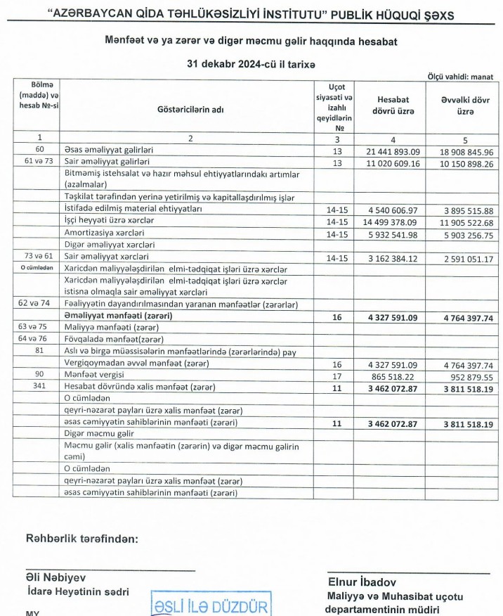 “Azərbaycan Qida Təhlükəsizliyi İnstitutu (AQTİ) publik hüquqi 2024-cü ili 3 milyon 462 min manat xalis mənfəət ilə başa vurub. AQTİ 2023-cü ili 3 milyon 812 min manat xalis mənfəət ilə bağlamışdı.