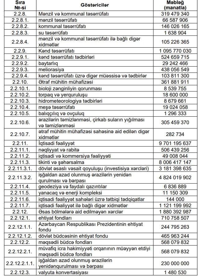2024-cü ilin dövlət büdcəsinin icrası üzrə məbləğlər məlum oldu