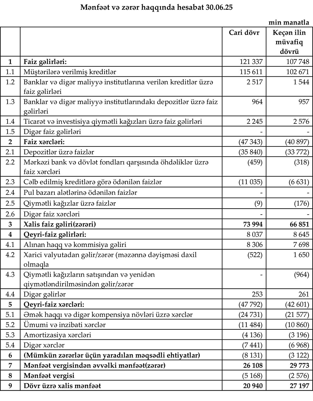 "AccessBank" QSC 2025-ci ilin 1-ci yarısını (yanvar-iyun) 20 milyon 940 min manat xalis mənfəət ilə başa vurub. Bank 2024-cü ilin 1-ci yarısını 27 milyon 197 min manat xalis mənfəət ilə bağlamışdı. Bu ilin ilk 6 ayında "AccessBank"ın xalis mənfəətinin 6 milyon 257 min manat və ya 29,9% azalması qeyri-faiz gəlirlərinin düşməsi, mümkün zərərlər üçün yaradılan məqsədli ehtiyatlara ayırmanın və ödənilən mənfəət vergisi məbləğinin artması ilə əlaqədardır.