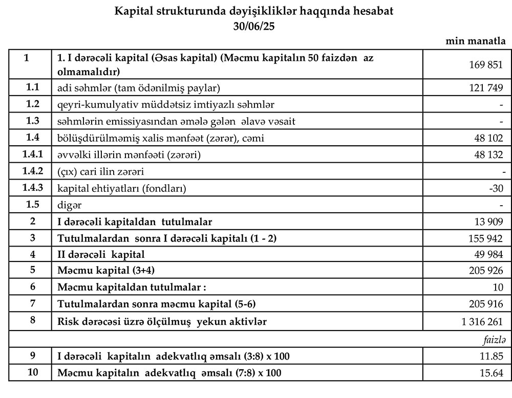 Xarici kapitallı bank 6 ayda 21 milyon manata yaxın xalis mənfəət əldə edib