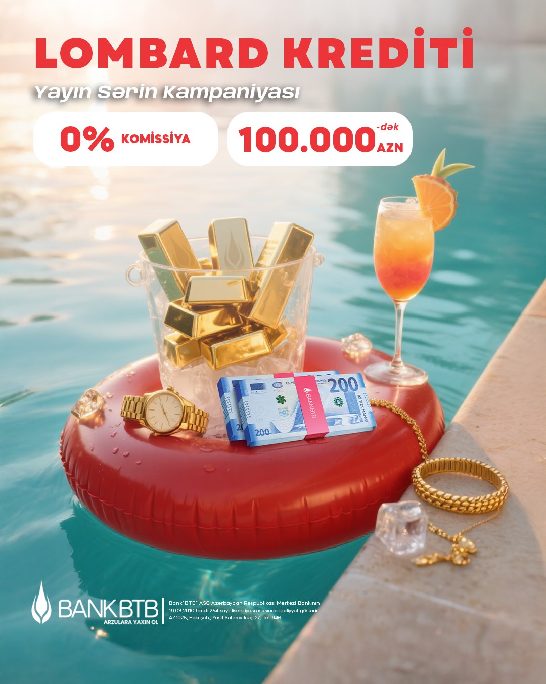 Bank BTB –dən yay mövsümünə özəl “Yayın Sərin Kampaniyası”Bank “BTB” ASC müştərilərini isti yay günlərində sevindirəcək yeni kampaniyasını təqdim edir! Lombard krediti məhsulu üzrə “Yayın Sərin Kampaniyası” çərçivəsində vətəndaşlar 100 000 AZN-dək krediti 0% komissiya ilə əldə edə biləcəklər.
