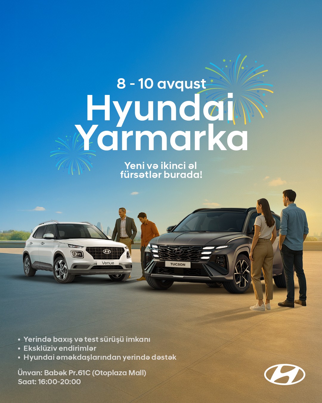 Bu üç günlük yarmarka, həm yeni, həm də ikinci əl Hyundai modellərini daha sərfəli qiymətlərlə əldə etmək istəyən hər kəs üçün ideal fürsətdir.