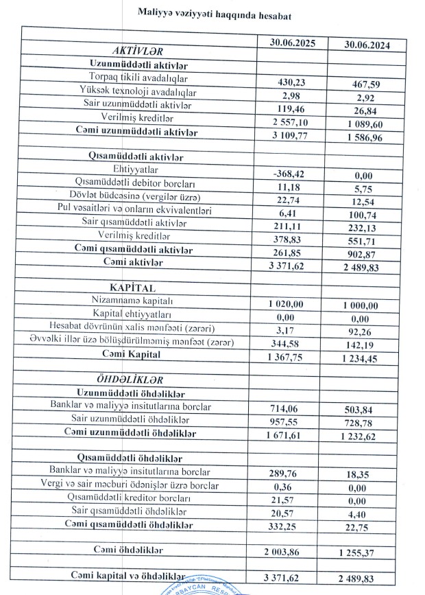 30 iyun 2025-ci il tarixində BOKT "Effektinvest" 3 milyon 372 min manat cəmi aktivlərə malik olub (30 iyun 2024-cü il tarixində 2 milyon 490 min manat).