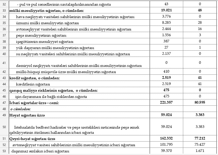 Hesabat dövründə qeyri-həyat sığortası növləri üzrə ödənişlər isə 6,1 % artaraq 153 milyon 257 min manata çatıb.