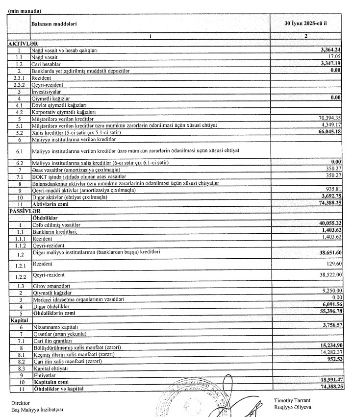 Müqayisə üçün qeyd edək ki, 2024-cü ilin 1-ci yarıında "FINCA Azerbaijan"ın cəmi əməliyyat gəlirləri 9 milyon 654 min manat, cəmi əməliyyat xərcləri 8 milyon 596 min manat, əməliyyat mənfəəti 1 milyon 58 min manat təşkil etmişdi. Ötən ilin ilk 6 ayında kredit təşkilatı aktivlər üzrə mümkün zərərlərin ödənilməsi üçün yaradılan xüsusi ehtiyata vəsait ayırmamışdı və ya ehtiyatdan vəsait qayıtmamışdı. Daşınmaz əmlakın satışından mənfəət və mənfəət vergisi nəzərə alınmaqla Təşkilat ötən ilin ilk yarısını 882 min manat xalis mənfəət ilə bağlamşdı.