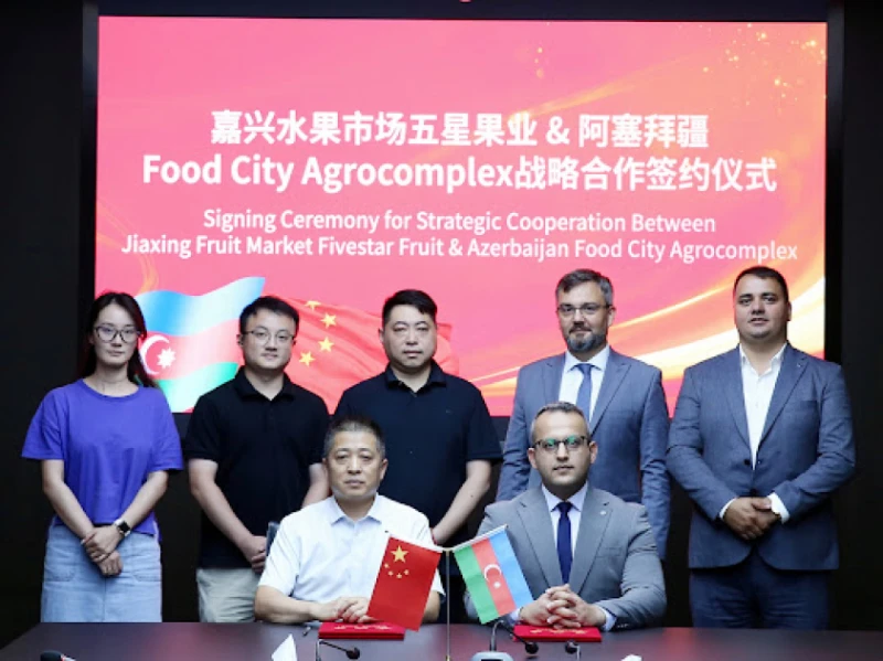 Food City Agrocomplex və Çinin iri meyvə bazarı"Jiaxing Fruit Market" arasında əməkdaşlıq memorandumu imzalanıb Əməkdaşlığın əsas məqsədi tərəflərin qarşılıqlı tərəfdaş kimi tanınması, Azərbaycan məhsullarının – xüsusilə də yaş meyvə və tərəvəzlərin Çinə ixracının təşviqi, eyni zamanda Çin məhsullarının Azərbaycan üzərindən Avropaya çıxışı üçün regional tranzit və multimodal daşıma imkanlarının yaradılmasıdır.Azərbaycanın şimal bölgəsində yerləşən, “bir pəncərə” sistemi ilə idarə edilən çoxfunksiyalı logistik hab olan “Food City Agrocomplex” ilə Çinin iri meyvə bazarı “Jiaxing Fruit Market” arasında strateji əməkdaşlıq memorandumu imzalanıb.