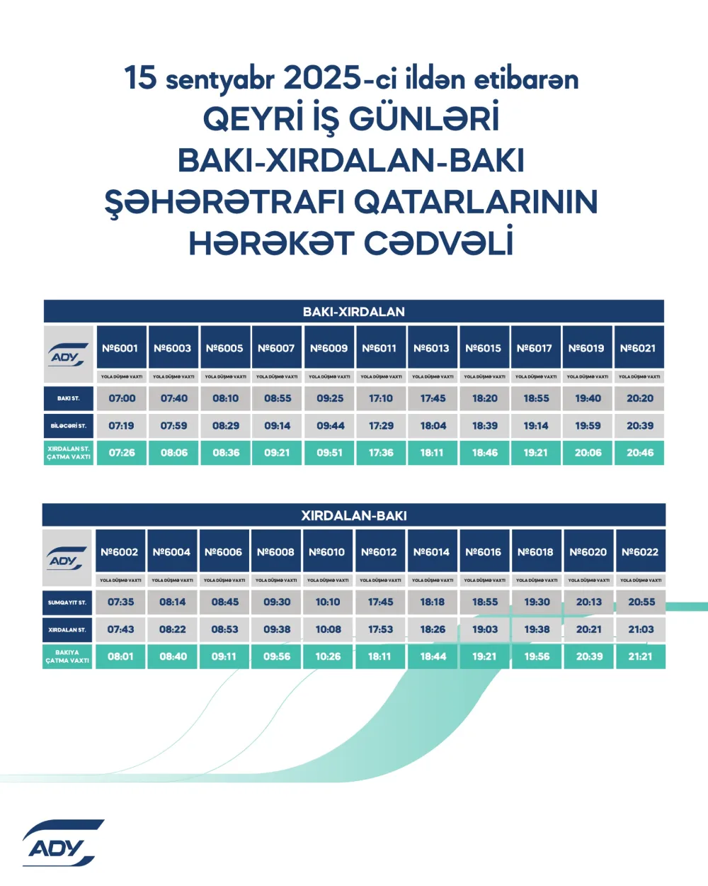 Qeyd edək ki, “Bakı şəhərində və ətraf ərazilərdə nəqliyyat infrastrukturunun təkmilləşdirilməsinə dair 2025–2030-cu illər üçün Dövlət Proqramı”nın təsdiq edilməsi haqqında Azərbaycan Respublikası Prezidentinin 30 yanvar 2025-ci il tarixli, 456 nömrəli Sərəncamı ilə təsdiq edilmiş “Dövlət Proqramının həyata keçirilməsinə dair Tədbirlər Planı”nın icrası çərçivəsində Xırdalan şəhərinin M-1 Bakı−Quba Rusiya Federasiyası ilə dövlət sərhədi və M-4 Bakı−Şamaxı−Yevlax avtomobil yolları ilə əlaqələndirməsini təmin etmək məqsədilə Xırdalan–Güzdək sahəsində dəmiryol xətlərinin altından yeni avtomobil yolu keçidinin inşasına başlanacaq. Bu səbəbdən ADY-nin Xırdalan–Sumqayıt–Xırdalan xətti üzrə sərnişin qatarlarının fəaliyyəti müvəqqəti olaraq dayandırılacaq, qatarlar Bakı–Biləcəri–Xırdalan–Bakı xətti ilə hərəkət edəcək.