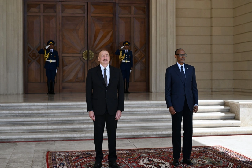 Hər iki ölkənin Dövlət bayraqlarının dalğalandığı meydanda Ruanda Prezidentinin şərəfinə fəxri qarovul dəstəsi düzülüb.