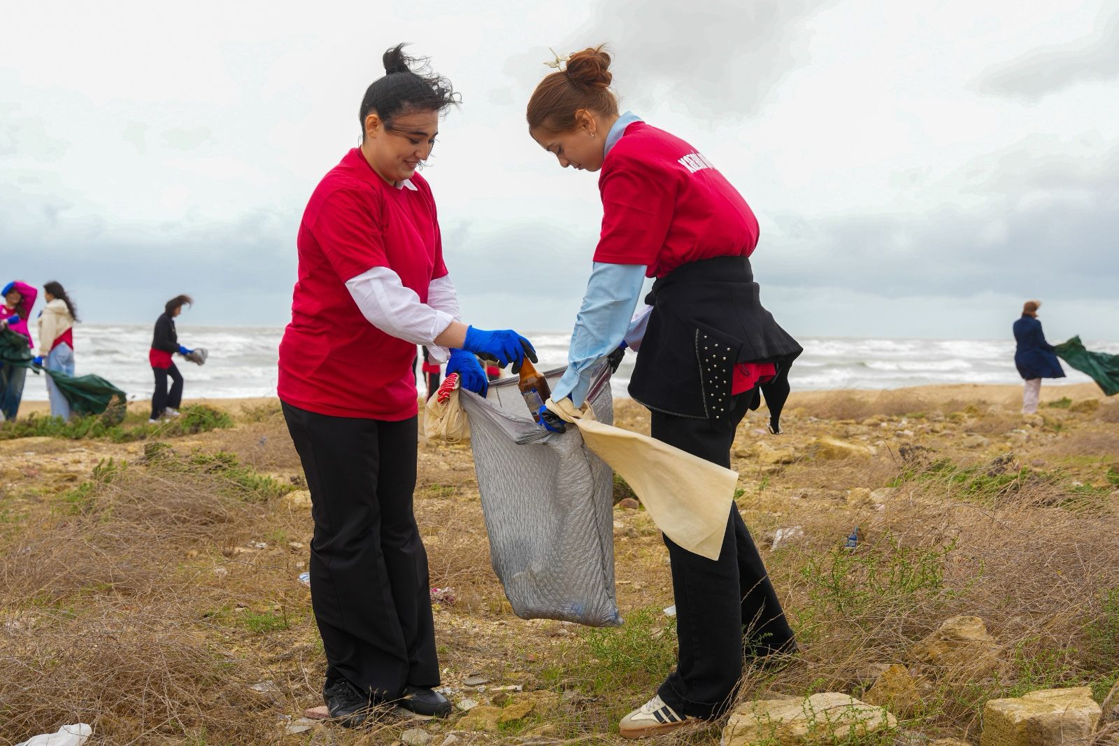 Xəzər sahilində müşahidə olunan güclü küləyə baxmayaraq, aksiyada iştirak edən könüllülər sahilin tullantılardan təmizlənməsində fəal iştirak ediblər.