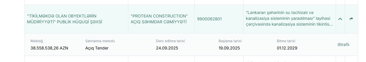 İşlərin başlama tarixi19.09.2025-ci il, bitmə tarixi 01.12.2029-cu ildir.