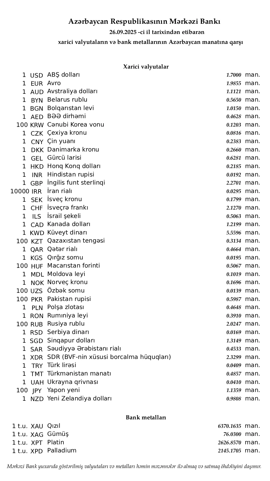 Dolların sabah üçün rəsmi məzənnəsi müəyyən olunub