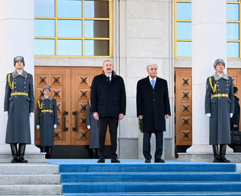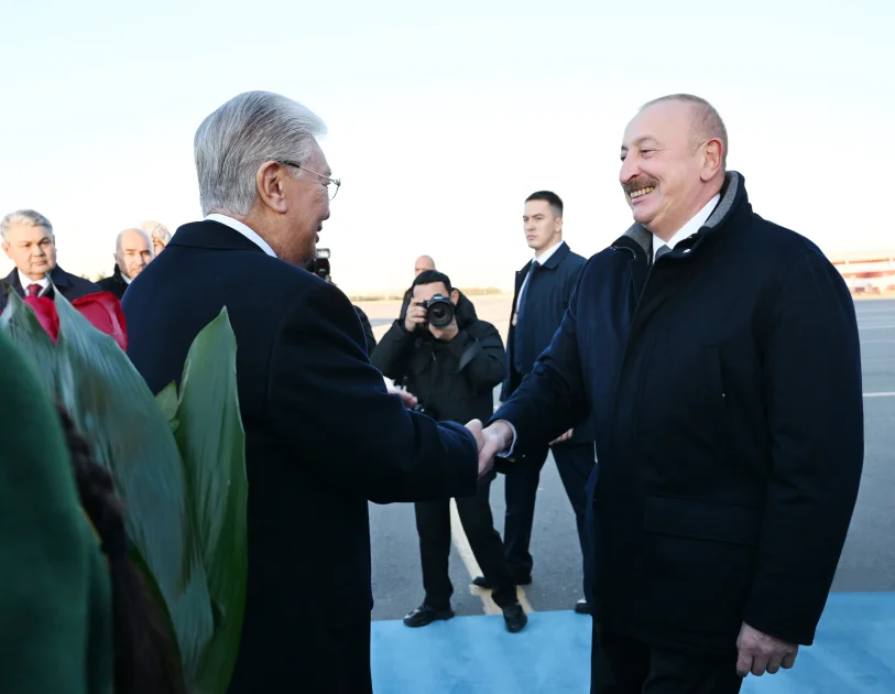 Dövlətimizin başçısını Qazaxıstan Respublikasının Prezidenti Kasım-Jomart Tokayev qarşılayıb.