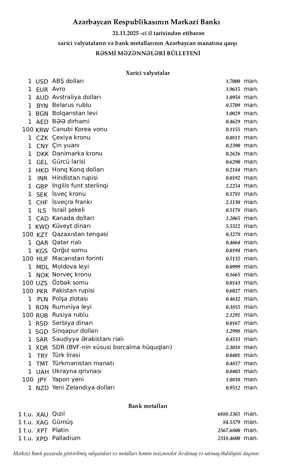 Dolların sabah üçün rəsmi məzənnəsi müəyyən olunub