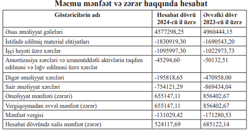 “Zirə Gülçülük” Qapalı Səhmdar Cəmiyyətinin 31 dekabr 2024-cü il tarixə maliyyə vəziyyəti haqqında hesabat