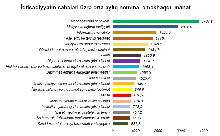 2025-ci ilin yanvar ayında isə ölkə iqtisadiyyatında muzdla çalışan işçilərin orta aylıq nominal əməkhaqqı əvvəlki ilin müvafiq dövrünə nisbətən 12,8 faiz artaraq 1062,9 manat təşkil etmişdi.