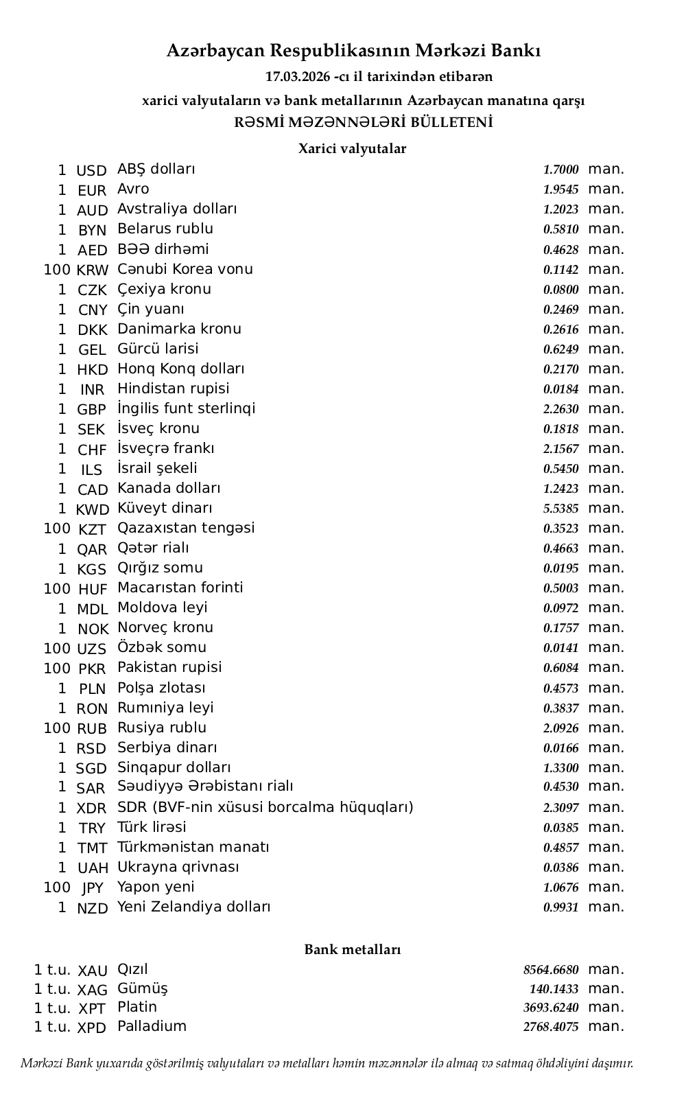 Mərkəzi Bank: 2025-ci ildə xam neftin orta qiyməti 68,5 dollar olub