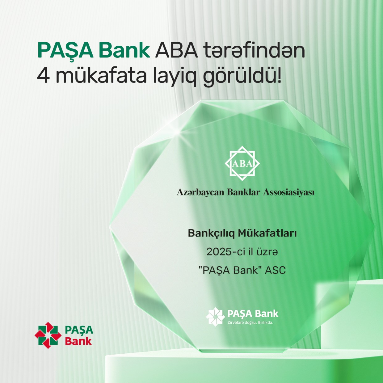 (®) PAŞA Bank Azərbaycan Banklar Assosiasiyası (ABA) tərəfindən keçirilən "Bankçılıq Mükafatları -2025" müsabiqəsinin bir neçə nominasiyasının qalibi seçilib.