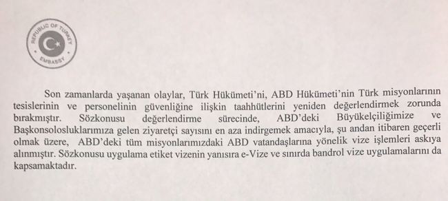 Türkiyə də ABŞ vətəndaşlarına vizalarının verilməsini dayandırıb.